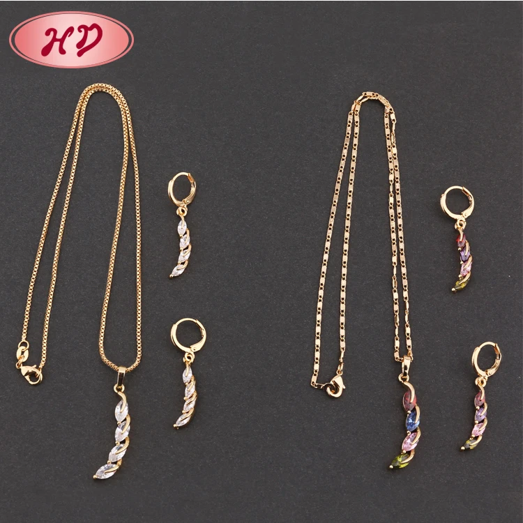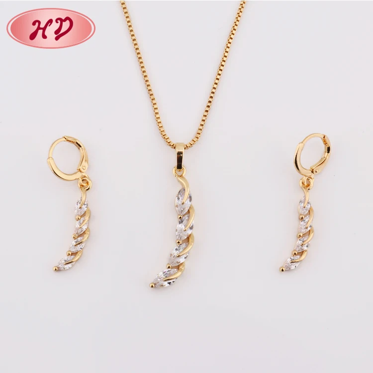 Popular Luxury Crescent Shape Wholesale  jewellery Dubai 24K Gold diamond Jewelry Set