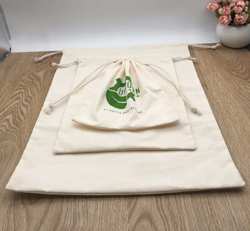 Muslin Cotton Drawstring Bag WIth Re-inforced Opening