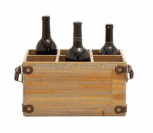 Custom logo wooden wine carrier 6 bottle crate with leather handle