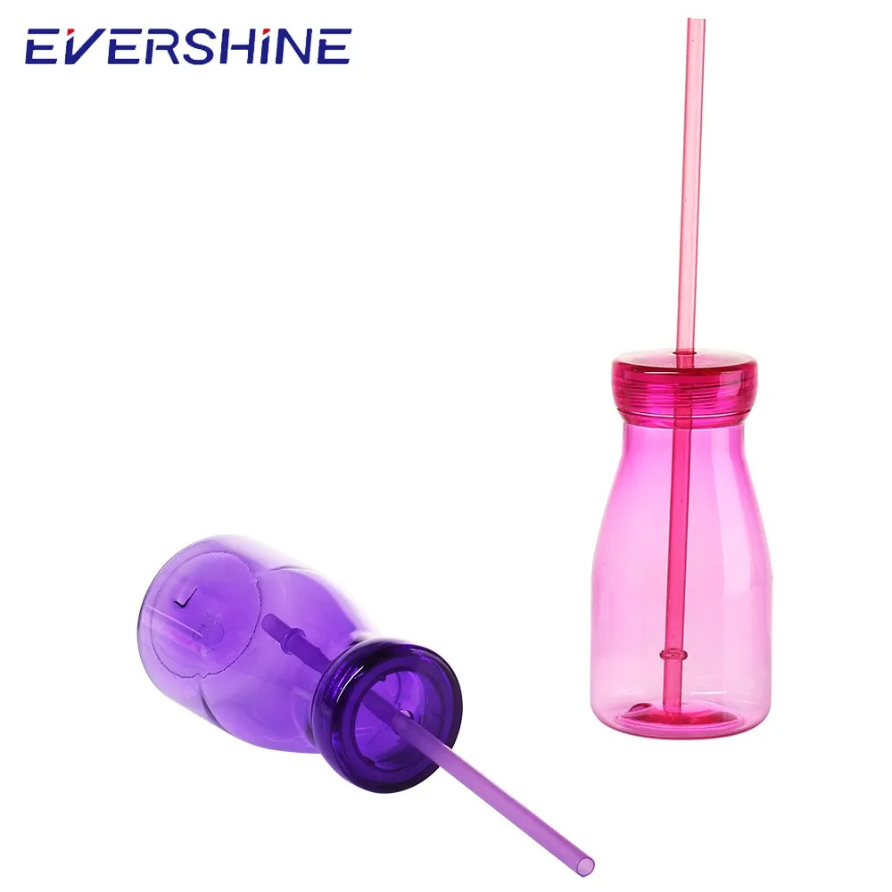 Cheap hot sale 350ml beverage plastic bottle milk bottle with straw