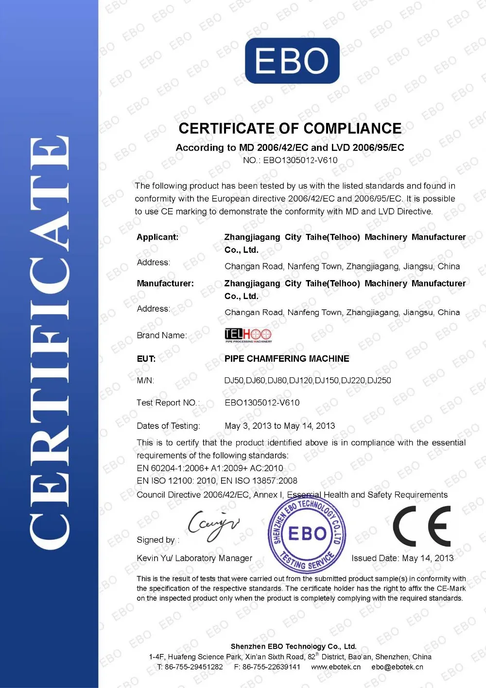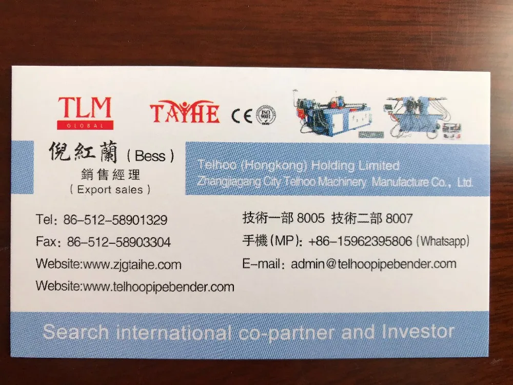 Zhangjiagang City Telhoo Machinery Manufacturing Co.,Ltd., (belong to Hongkong Telhoo Holding Limited.)established in 1991, is TAIWAN joint venture manufacturer for pipe processing machinery.
