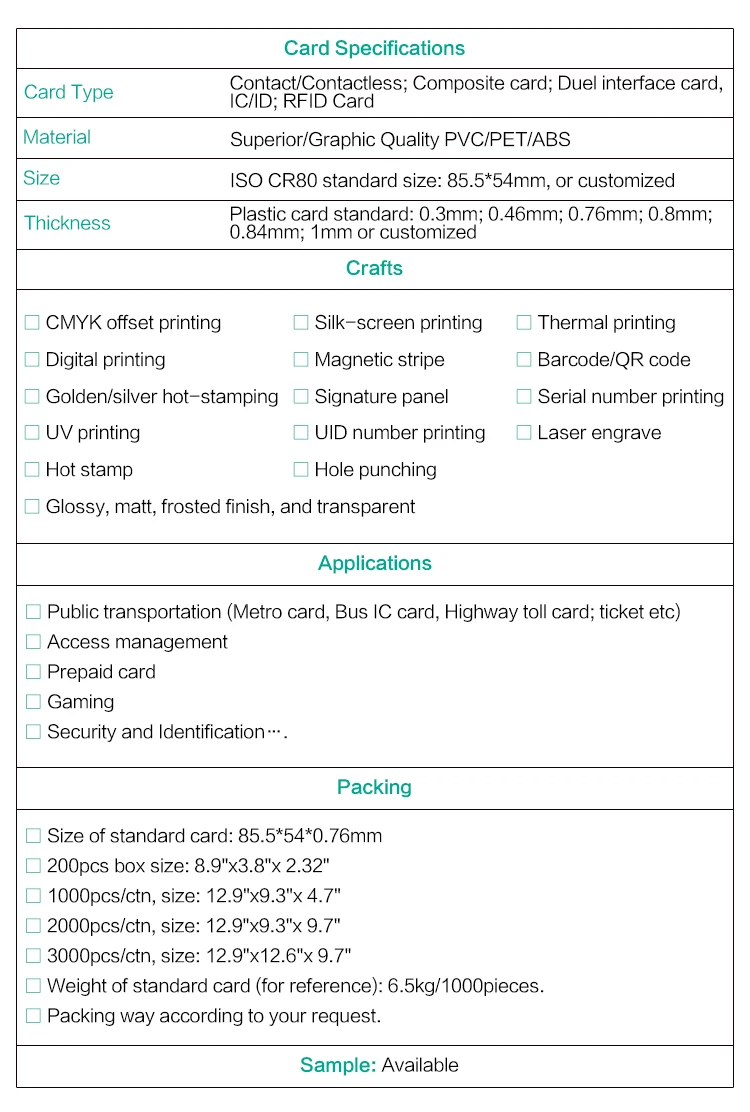 The price of product is based on IC to use since same application has different options availlable, and customized crafts on cardbody have different cost as well.Please send your inquiry details to us via email or ask for more information from onlineTrade Messager. Our customer service will give
