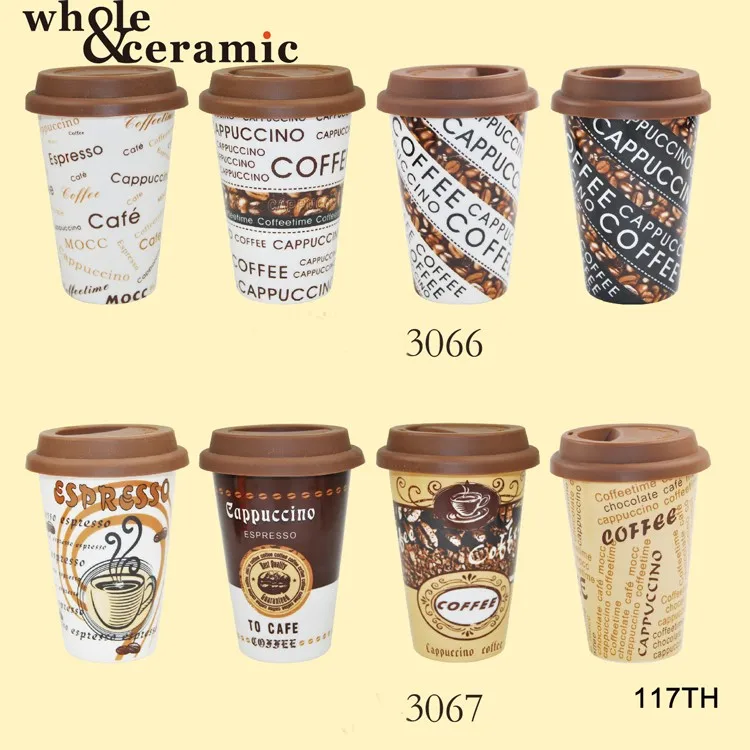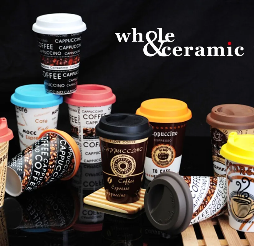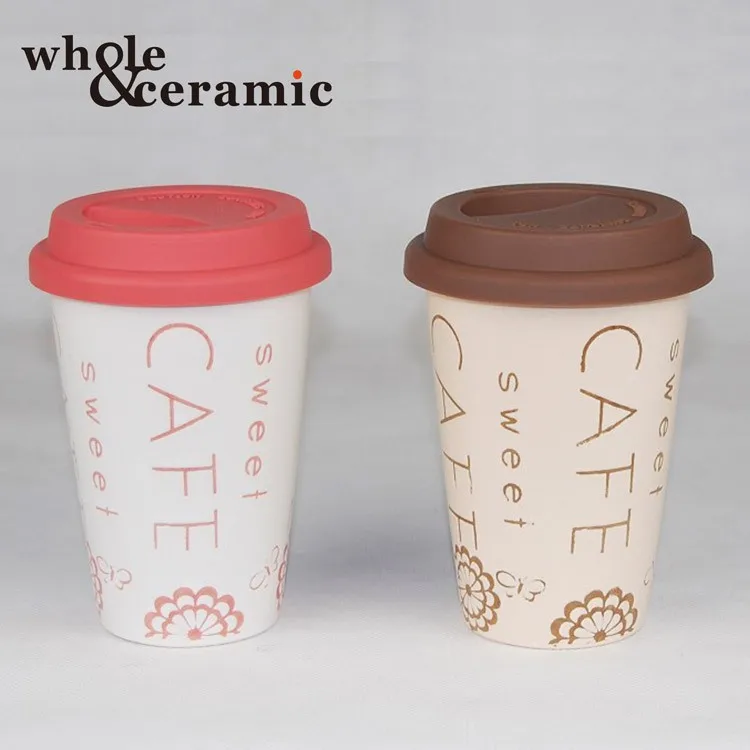 New Bone China Porcelain Takeaway Coffee Travel Mug,Coffe-To-Go-Mug Silicone Rubber Lid Cover