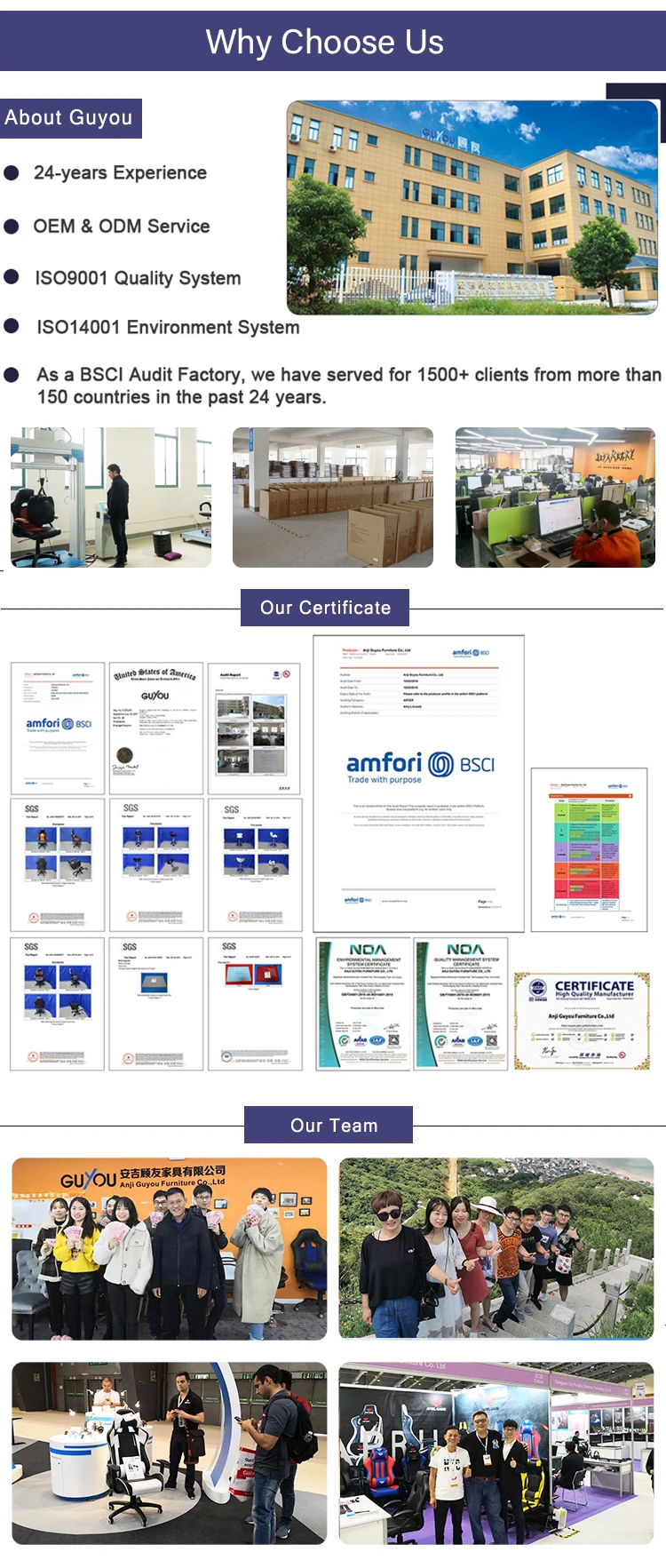 Warranty\t24 months, we will change new chair for customer if due to our chair quality cause chair can't be used | ||
