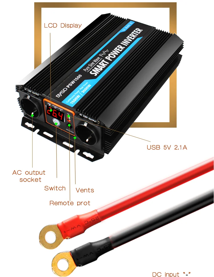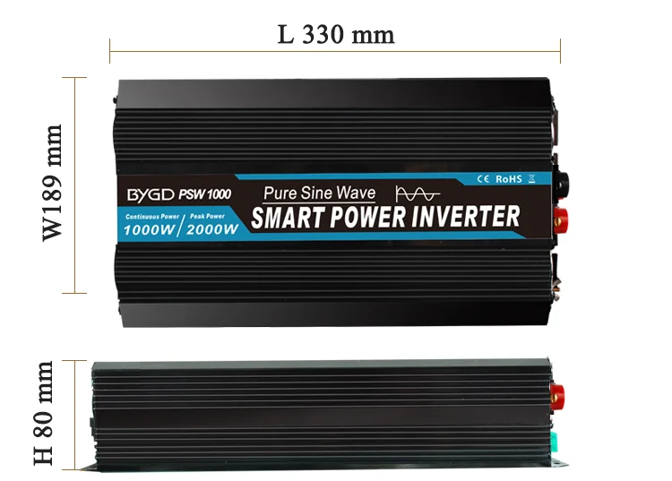 BYGD Power Inverter 1000w 12v/24v To 220v Pure Sine Wave Power Inverter Converter DC to AC inverter