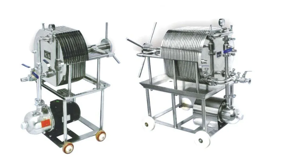 This machine is filter press of S.S. 304/316 coating,For the concentration of less than 50% viscosity,liquid with a little containing slag,As a enclosed filter to achieve purification, sterilization, clarification and other fine filter,