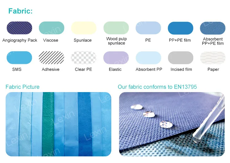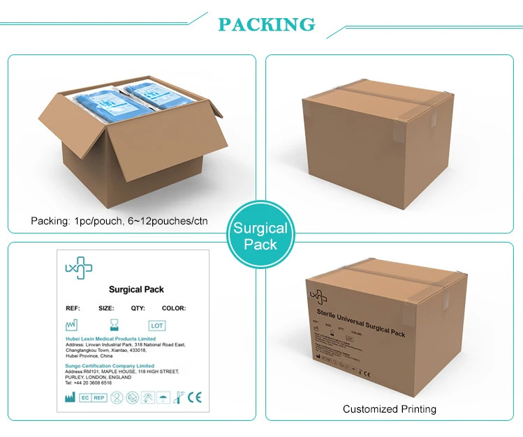 Hubei Lexin offers a comprehensive selection of individual surgical drapes and surgical packs for a variety of different procedures including general orthopaedic, gynaecology, obstetrics, urology, ENT and cardiovascular etc.