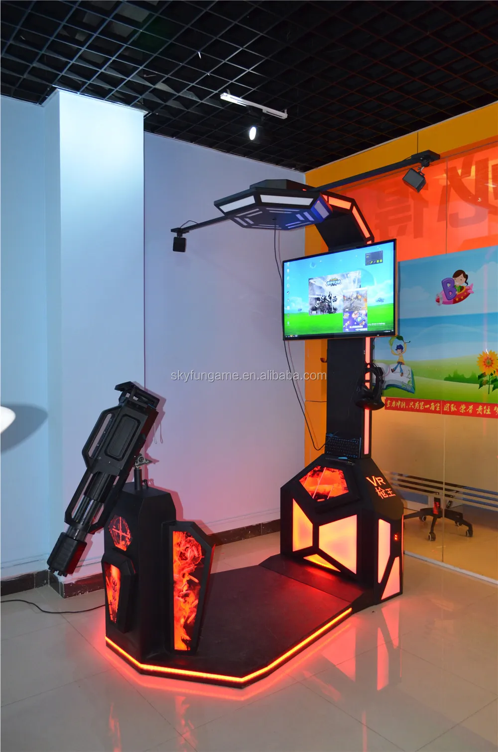 5.Comes with 42 inch big screen synchronization game screen, play promotional video and display the game description;