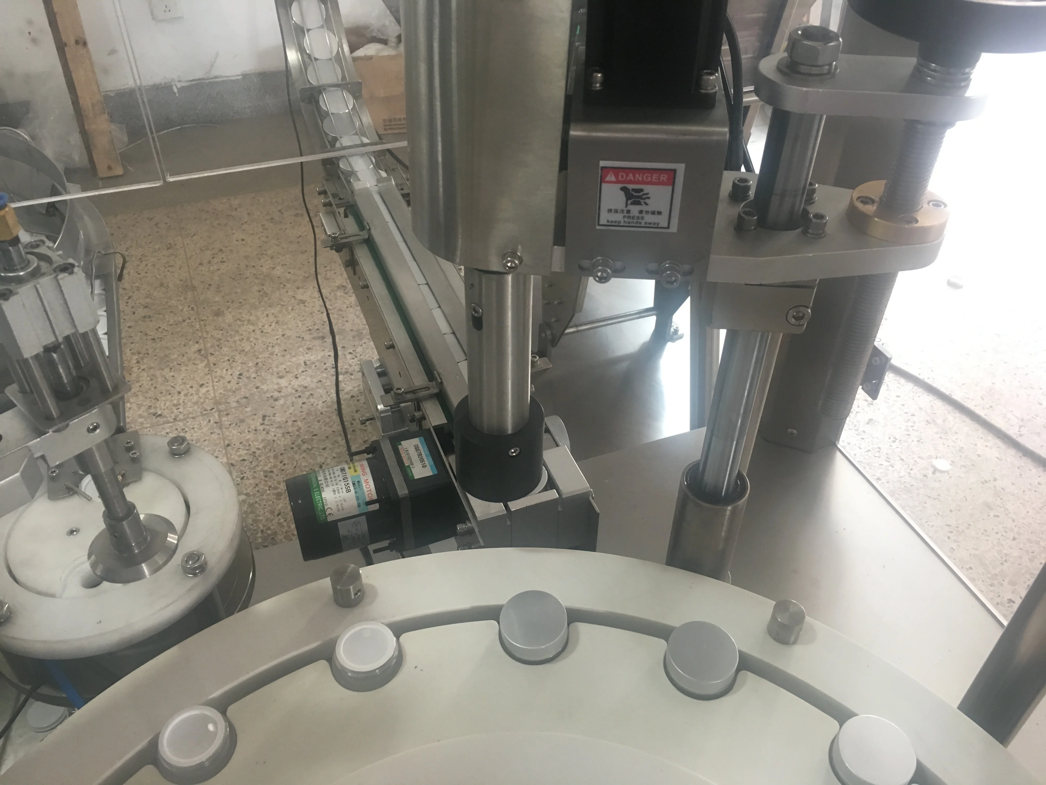 This machine has the functions such as automatical screw type bottle feeding,bottle detecting(no bottle no filling,no bottle no cap feeding),filling,cap feeding and capping automatically.
