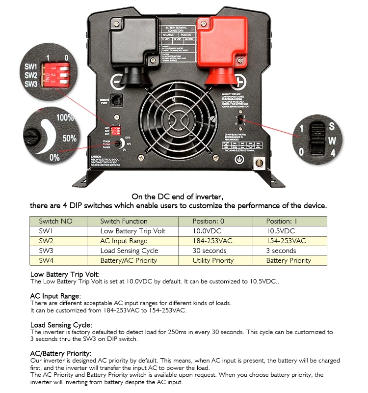 | Low Battery Trip | 10.0Vdc / 10.5Vdc | |||||||