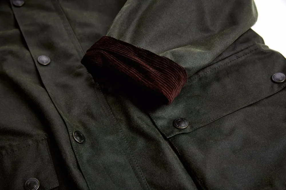 Details: | Made from pure cotton, and then dyed and waxed Features 2 practical front pockets and a button down fastening for extra added protection. Then brass studs and zips Cotton corduroy are on cuff and collar, which you could get a soft feel against your skin. Full zip with storm flap |