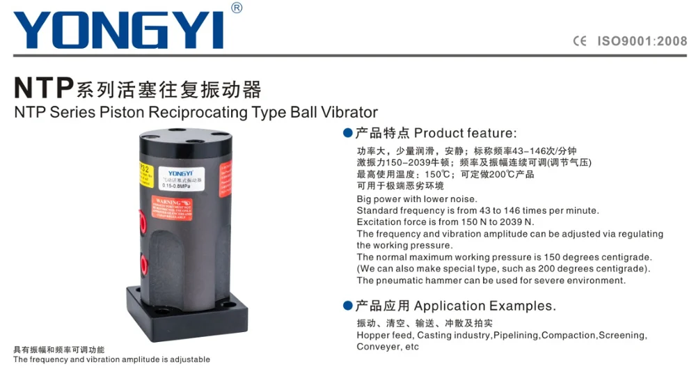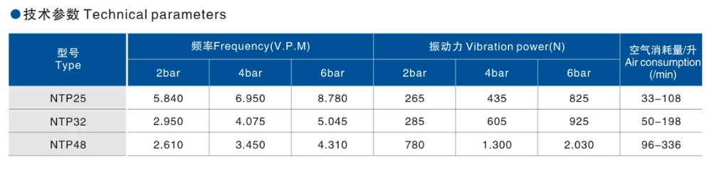 •The frequency and vibration amplitude can be adjusted via regulating the working pressure