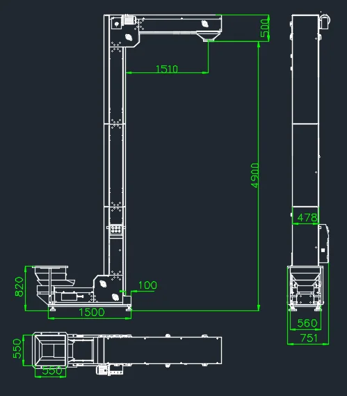 This type of elevator drives the materials through chain transmission, for vertical transport of granule and small blocky materials, high lifting capacity and speed. It matches up with electronic combination weigher and packing machine to achieve quantitative automatic packaging system, widely used in the food packaging industry.