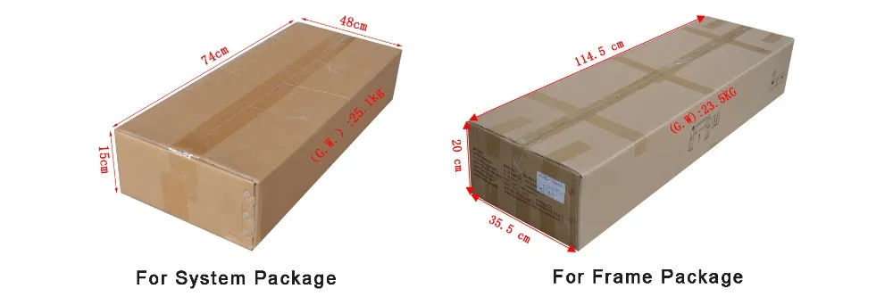 1. The samle is packed in two boxes, one for system parts, the other for frame parts.