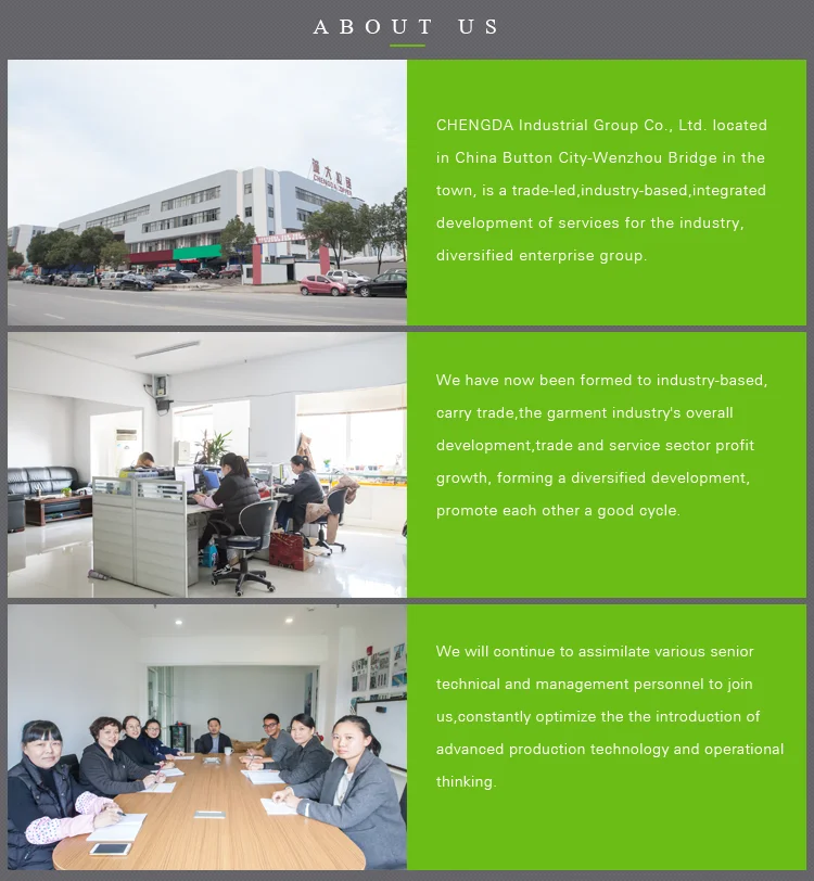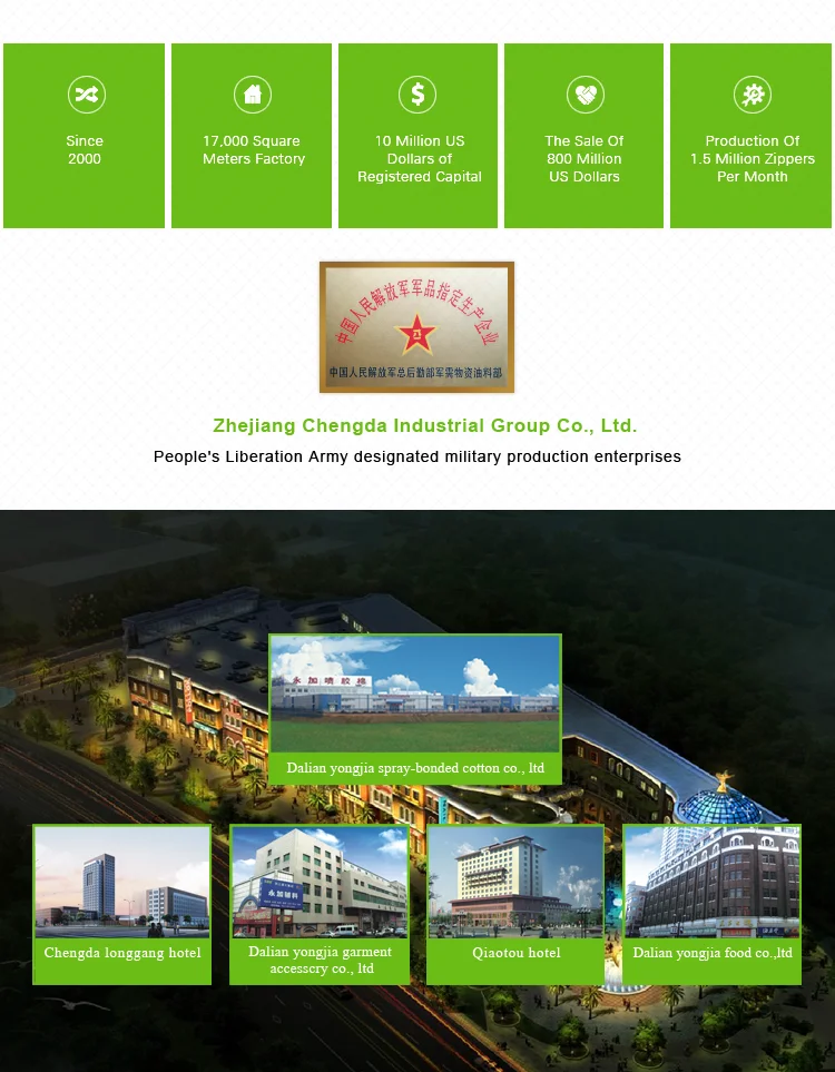 CHENGDA formerly known as Wing Tai Clothing shop materials company,after all my colleagues in nearly three decades of efforts,now has five wholly owned net assets of over ten million: of which, including Chengda Zipper Factory,Dalian Yongda Shopping,Bridge Hotel,Prudential Hotel, Longgang, Wenzhou,Dalian Wing plus clothing shop materials Limited.
