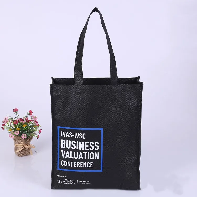 Black custom foldable cheap promotional carry bag non woven fabric bag