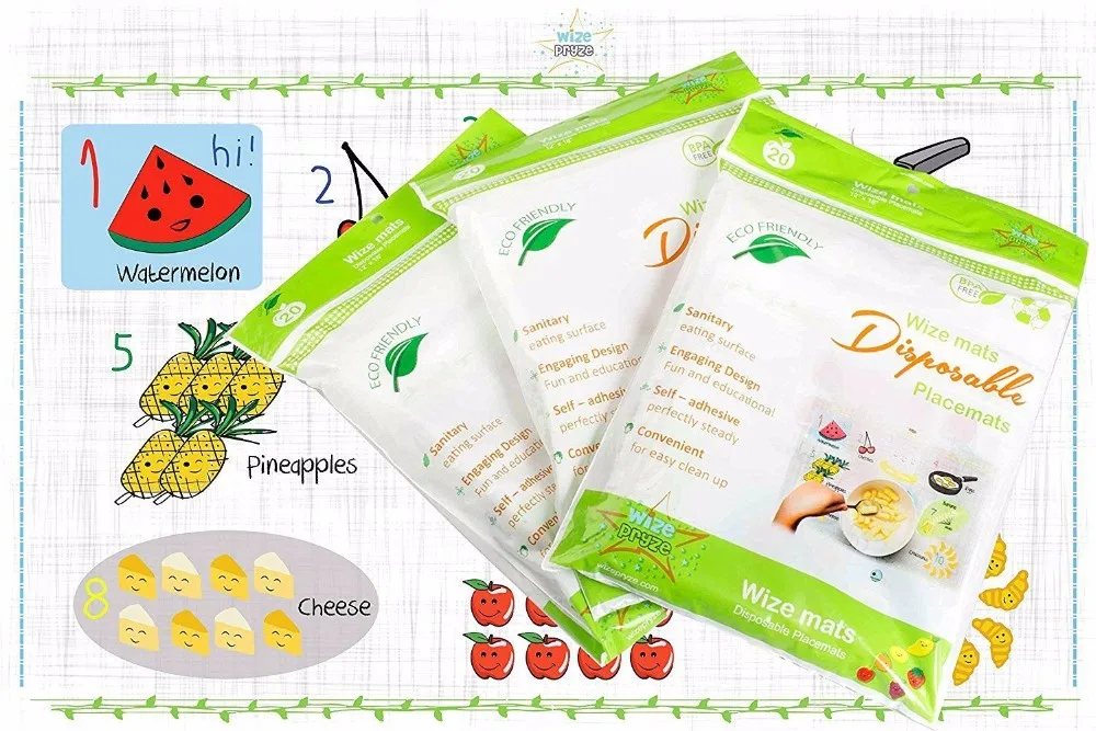 To use: Peel off the adhesive strip backing; Press placemat on to the eating surface; Ready to go! Easily peels off to dispose.