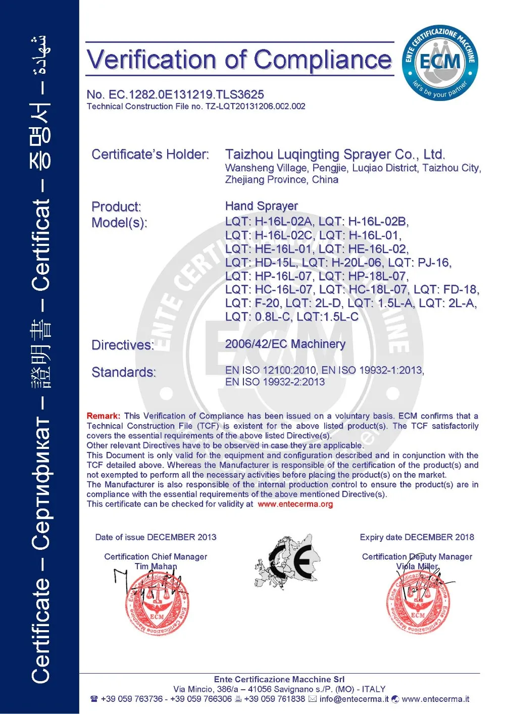 Taizhou Luqingting Sprayer Co.,Ltd is located in the east of Zhejiang province.which covers the three famous highways-Ningbo,Taizhou,Wenzhou and is known as the capital of sprayers.The company has advanced automatic production equipment,perfect testing equipment,a group of excellent technical personnel, strict and perfect management system,specializing in the production of more than 200 series of agricultural knapsack sprayer,battery sprayers cleaning machinery,power sprayers and garden machineries,the company covers an area of 10000 square meters and has about 200 staff.our annal production is over millions of sprayers which are sold at home and abroad with the full implementation of brand strategy,create first-class quality,we use the advanced computer-aided design software for product design and development.