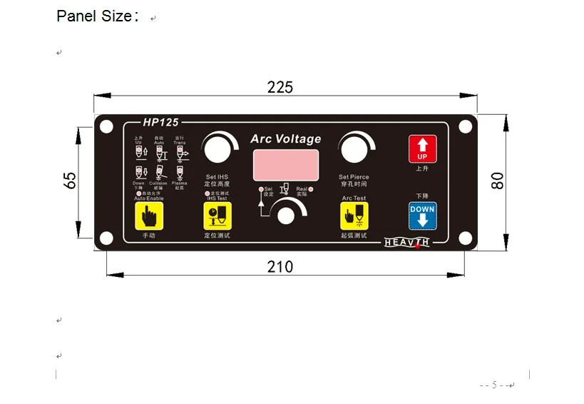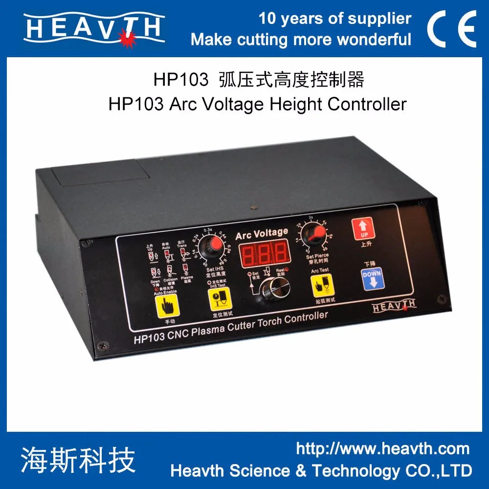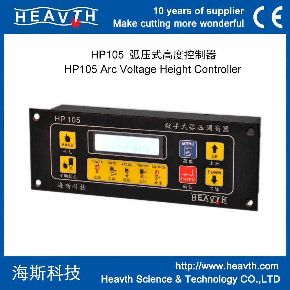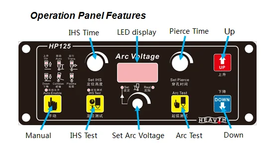 HP125 torch height controller is equipped with constant current plasma source. When the distance gets farther,the arc voltage increases; On opposite, the arc voltage will decrease. HP125 torch height controller will inspect the voltage change, then control the distance between cutting torch and material via the lift motor.