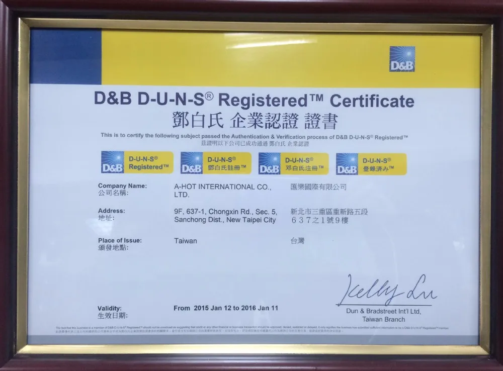 DECLARATION OF AUTHENTICATION- To whom it may concern, above certifications are owned by A-HOT INTERNATIONAL CO., LTD. We provide signed authorization to client who requests for the authentication.