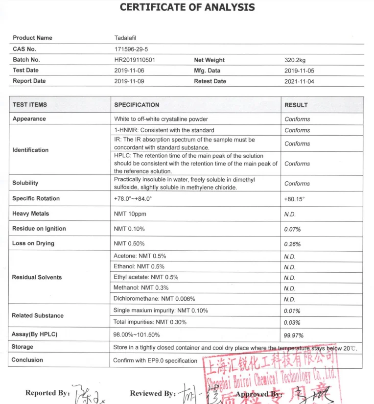 COA Of Tadalafil