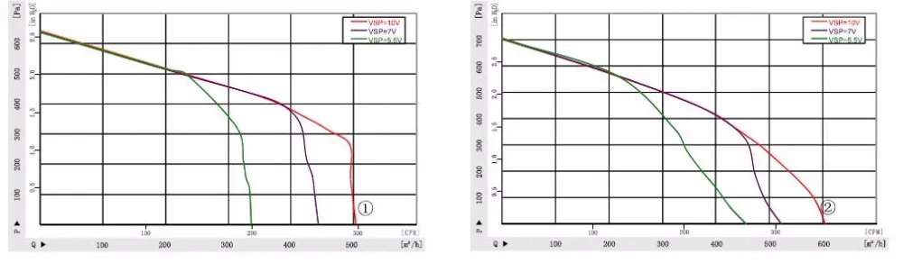1.Constant air flow, curve as right one; Within pre installed soft ware, fan RPM could adjust automatic to supply constant air flow when system oressure has changed.
