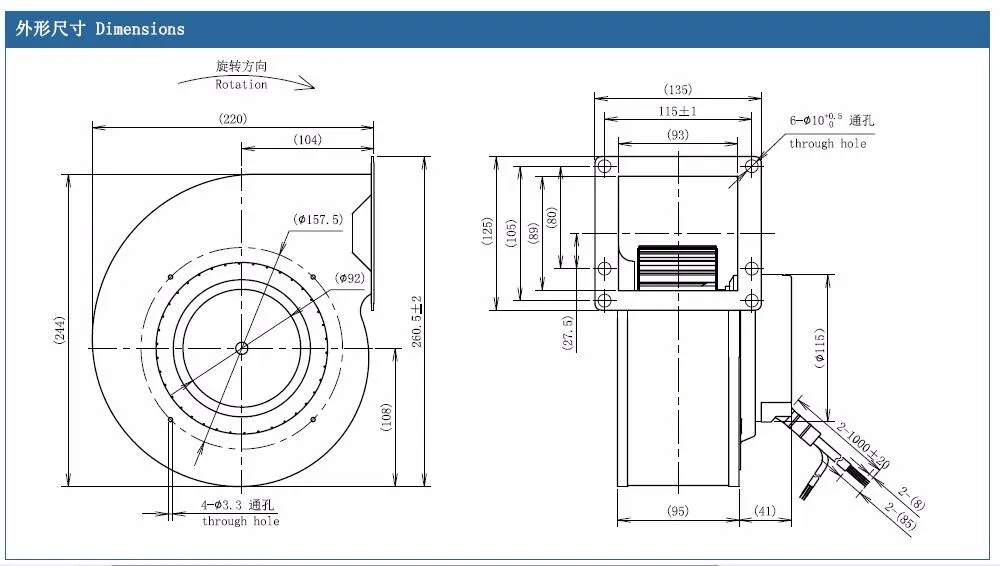 1. Model: F3P160-EC092 air blower motor