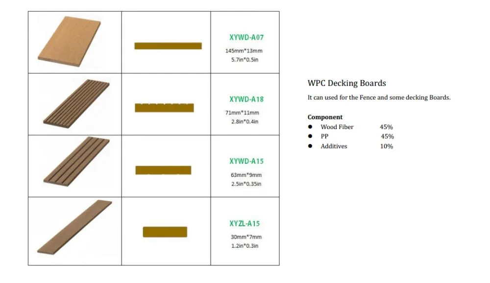 We are a professional WPC manufacturer in China,and we are supplying various of decking,wall cladding,fence,DIY tiles,handrails,railing,bench,flower box and dustbin etc.