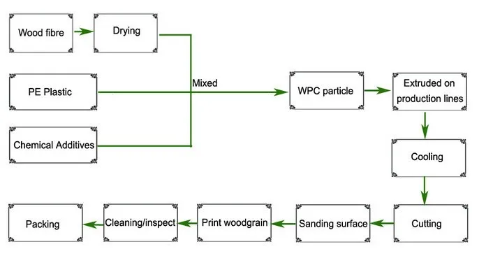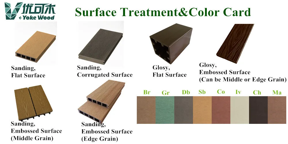 Which made of of 60%~65% natural wood fiber(professionally dry treatment),30%~35% of eco-friendly HDPE/PP/PE/PVC materials and 5%~10% chemaical additive(anti-UV agent,anti-oxidation agent,reinforcing agent,stabilizers,colorants,anti-fungus agents,coupling agent ect),but different wpc product have different ingredient.