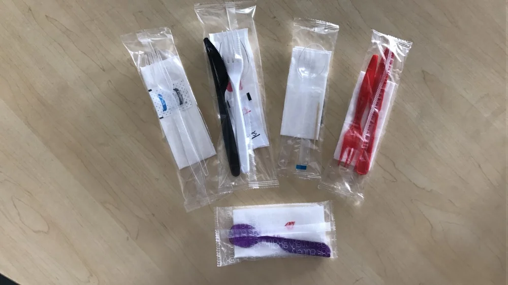 tableware disposable airline napkin salt pepper toothpick set plastic cutlery auto packaging line machine could be packed disposable / plastic napkin(paper tissue), spoon, fork, knife, salt/pepper, sugar, straw, toothpick, chopsticks, stirrer, wet wipe..... specialized for airline, hotel, restaurant, fast food....