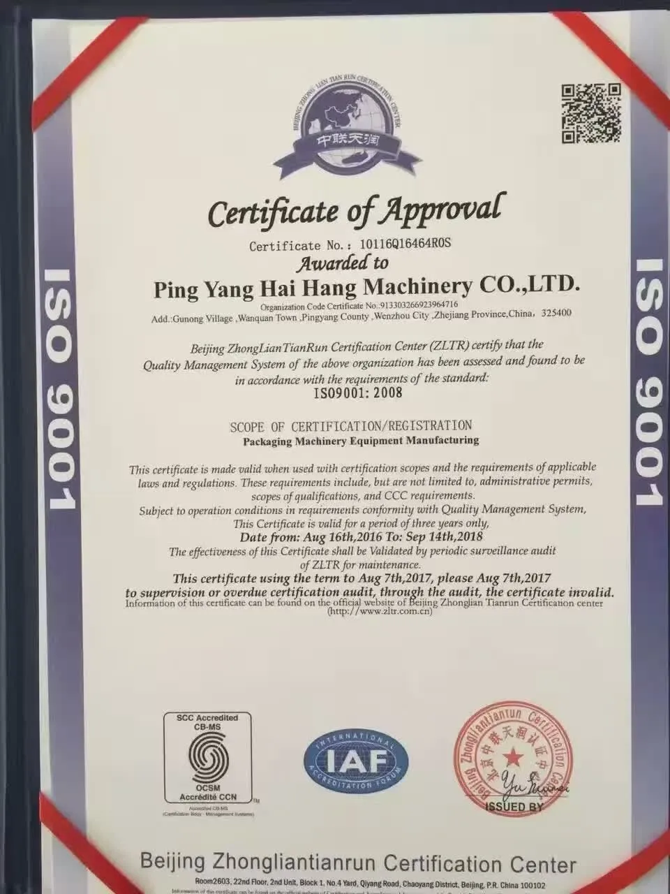 located in the“ Chinese package manufactory city”, Wenzhou, China. Established in 2,009, is a manufacturer specialized in the research, development and production of napkin with spoon fork knife automatic flow pack machine, napkin with cutlery salt pepper automatic packing machine, single wet wipe automatic packing machine, drinking straw automatic counting packing machine, plastic cup automatic counting packing machine, and other products packing machine, specialized for airline, hotel, restaurant, fast food.