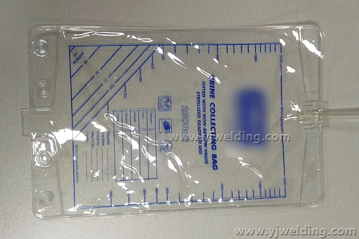 PVC and EVA Urine bag,blood bag high frequency sealing & cutting machine adopts automatic cut sheeter input material system to finish weld pipe and bag making continuously. You can choose automatic intubation system device to realize non-body cooperation for catheterization bag, douche bag, hydrops bag, leg bag etc disposable medical bags.