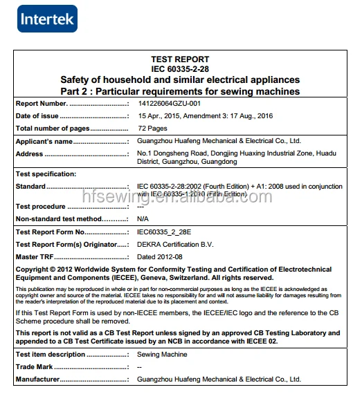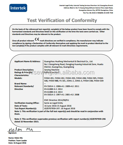 Founded in 1991, Guangzhou Huafeng Mechanical & Electrical Co., Ltd. is one of the most professional manufacturers for Household Sewing Machines based in China. We are a high-tech enterprise that supplying customers with R&D, production, sales and after-sale service. With 15 assembly lines, large scale of workshops at the factory, HUAFENG has strong capability in bulk production(Output: About 450,000 Sets of Household Sewing Machines Monthly) for our customers worldwide.