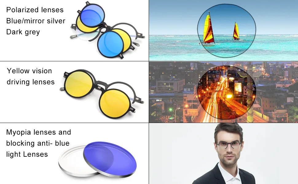 2) Different clip on lens color for your selection.