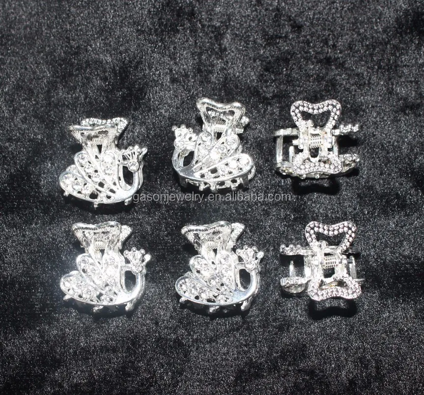 Mini silver metal hair claw with Beads and Rhinestones