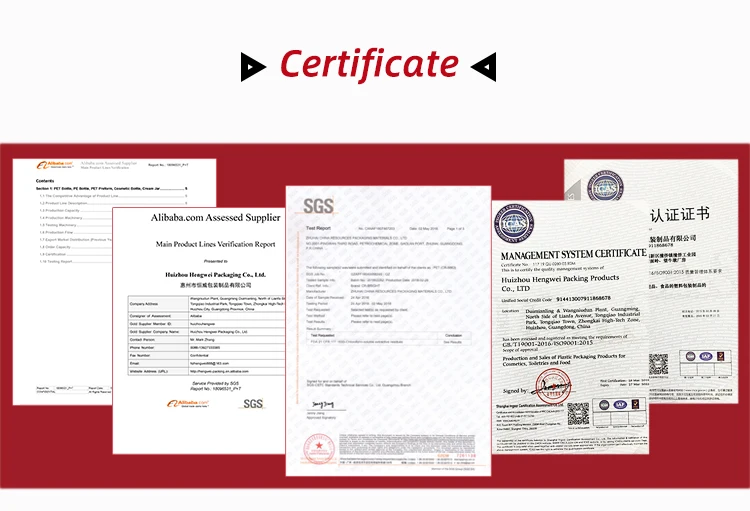 Huizhou Hengwei Packing products Co., Ltd was established in 2006, we are professional in making all types of PET/PE/PP/ABS/PETG bottles. Our factory covers an area of 3000 square meter, to keep raw material and finished goods, and all material was well placed and organized.We have types of printing: screen printing, hot stamp, label pasting, labeling set etc. We have been cooperated with many big brands for long time, such as Disney, Walmart, Watsons, Boots and more. Sincerely welcome to be our partner!