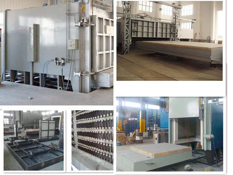 Heat treatment furnace is divided into annealing furnace, quenching furnace, tempering furnace, normalizing furnace, quenching and tempering furnace, carburizing furnace, nitriding furnace, melting furnace. Mainly used for high chromium, high manganese steel castings, ductile iron, roll, steel, stainless steel quenching, annealing, aging and a variety of mechanical parts heat treatment. Welding parts to eliminate stress annealing, aging and other heat treatment process. Heating methods are electric heating, fuel, gas, coal, hot air circulation and etc.