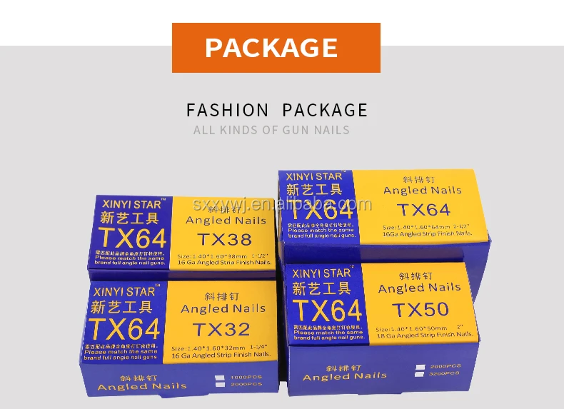 XINYI 20 Degree TX angled finish nails 16Gauge 20 64mm wooden nail