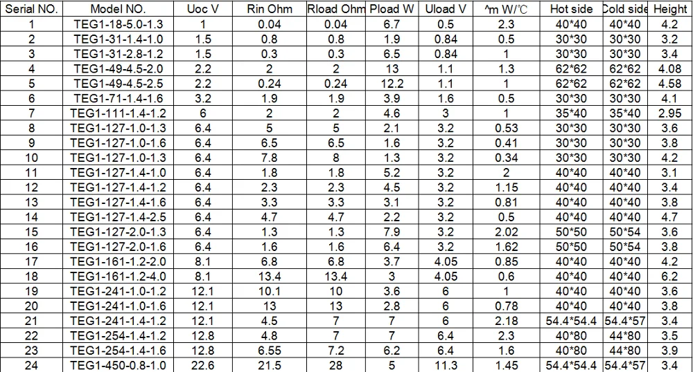TEG1 127 1.4 1.2Thermoelectric water cooling power generation peltier module