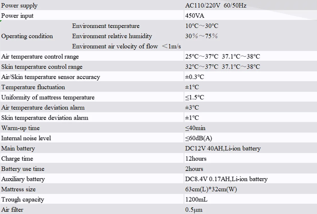 5 | 4 operating windoes and 2 iris ports,5 infusion seals The infant bed can be pulled out from side door easily | |
