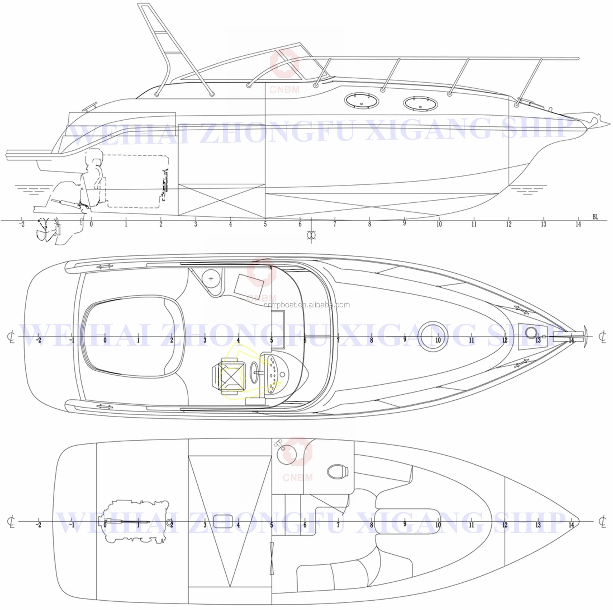 Engine | Outboard propulsion with inboard engine Optional: Weichai, Volvo Penta, CAT, Cummins, Steyr, Yanmar | |||||