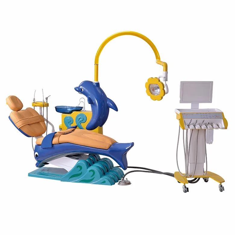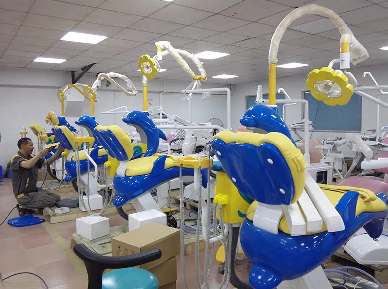 4 hole high-speed handpiece tubing with connector 2 setLow-speed handpiece tubing with connector 1 set 3-way syringe(cold and hot) 2 pieces Strong and weak suction 1 set each Adjustable headrest 1 set Double armrest 1 set Movable tolly tool tray CX-236 1 set 6-position for handpieces, syringe, scaler and micro motor Water suction and saliva ejector 1 set each Operation lamp 1 set Lamp arm 1 set 24V Opg X-film viewer 1 set 24V DC motors (Xinyi) 1 set Assistant control sytem with control pannel 1 set Water purified system 1 set 24V Water heating system 1 set Water bottle 1 pc Auto water supply and flush cuspidor system 1 set Glass cuspidor 1 set Round foot pedal CX-104 1 set Dentist stool CX-142 1 piece Micro fiber leather cushion 1 set Solenoid valve CX-097 2 pcs ABS plastic covers 1 set PVC air and water tubes All kinds of copper valves Without memories Chair frame without linked movement 1 set Without safety system Dolphin & wave cartoon design Without options(handpieces, scaler,curing light,air compressor,Oral camera system ) Packing size: 150*110*130cm 16unit/20GP, 32unit/40HQ Test report: IEC60601-1, IEC60601-2,ISO6875, ISO7494-1,ISO7494-2.RoHS