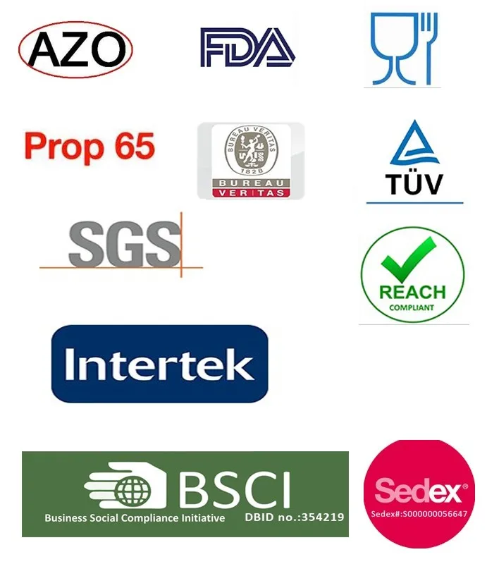 A: AZO Free, Low Lead Test, LFGB (PAHS, PHTHA LATES), REACH, Heavy Metal Free Test, etc.