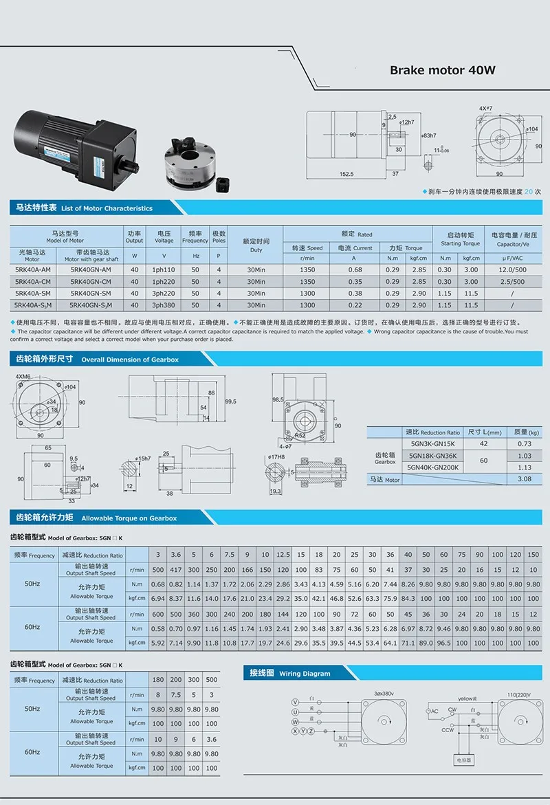 1. Motor&Gearhead Dimensions : 60mm, 70mm, 80mm, 90mm, 104mm