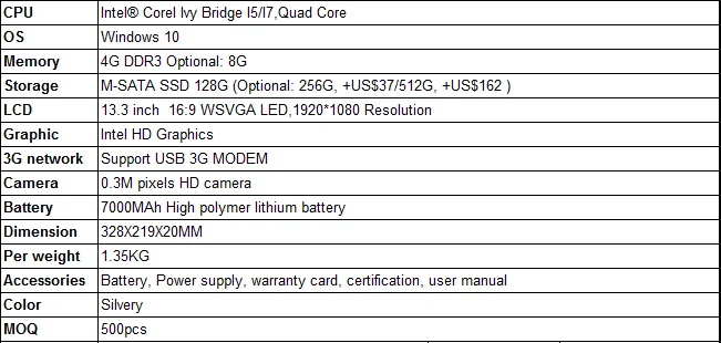 More information of Wholesale cheap 256 SSD Gen Metallic Housing I3/I5/I7 13.3-inch 1080P Laptop