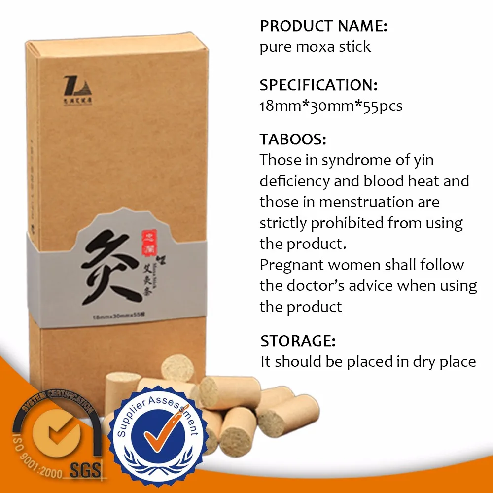 Directions:Ignite a moxa stick at its one end and place it two or three centimeters away over the site to bring a mild warmth to the local place,but not burning,for about 15 minutes until the skin becomes slightly red.
