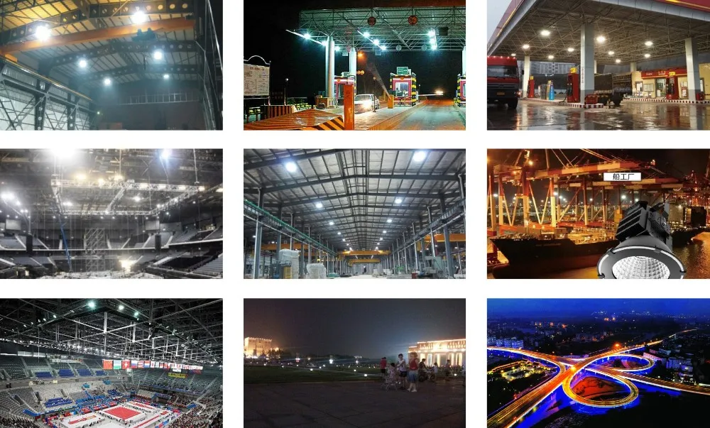 Factories, stadiums, golf courses, ships, airports, subways, commercial establishments, overpasses, outdoor advertising, landmarks and other panoramic lighting