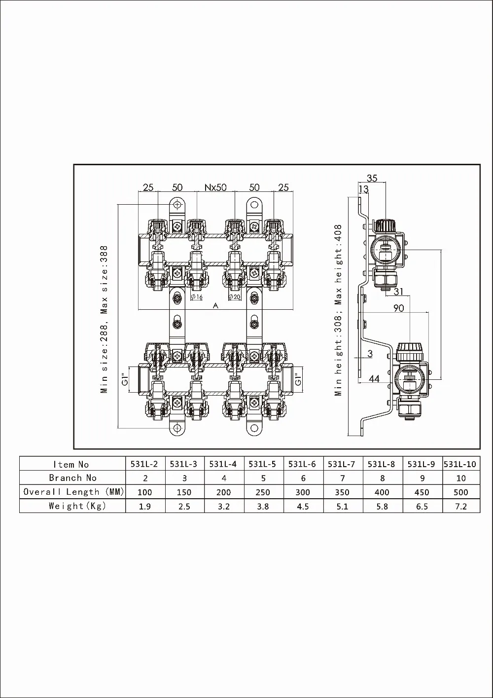 | Branch Interval | 50mm |