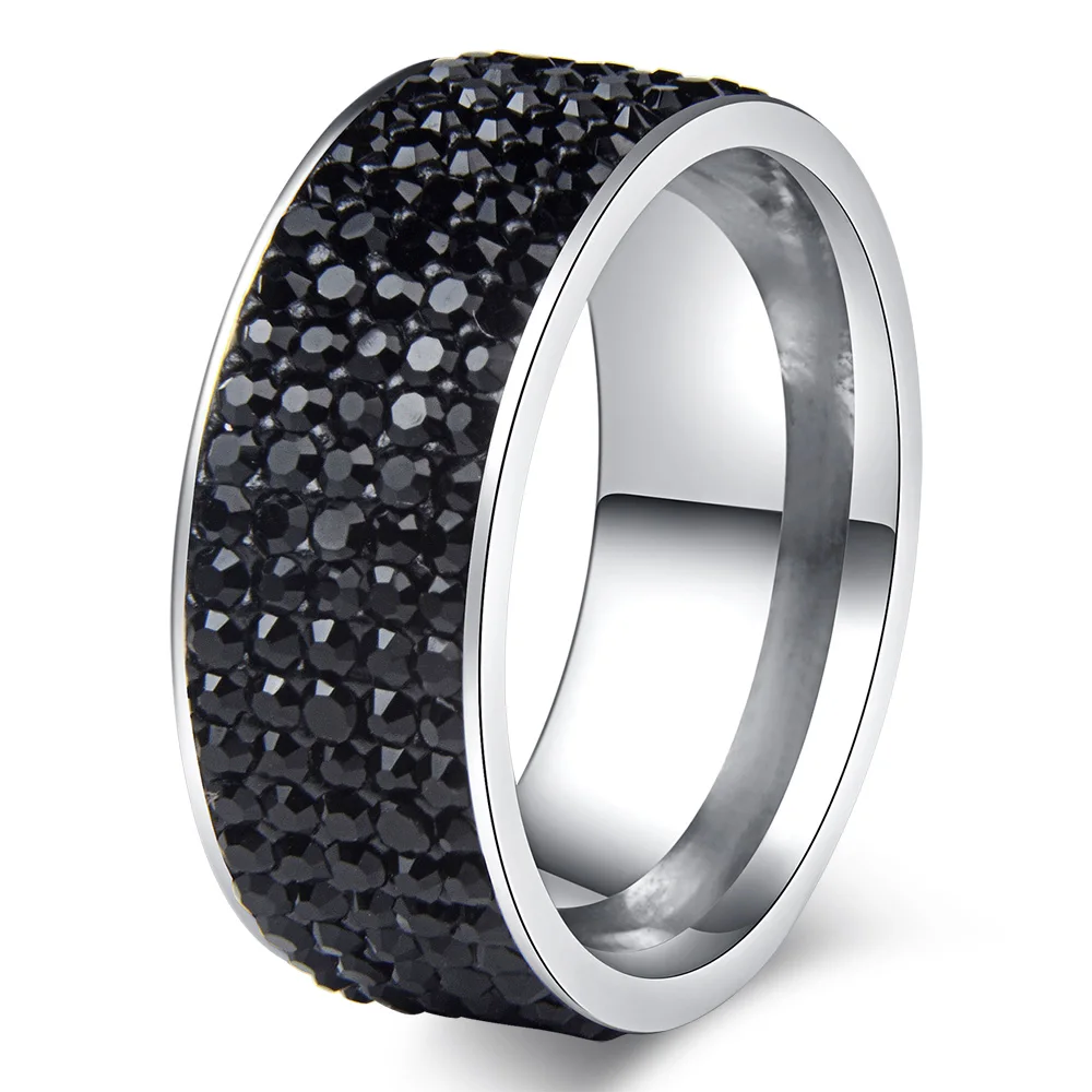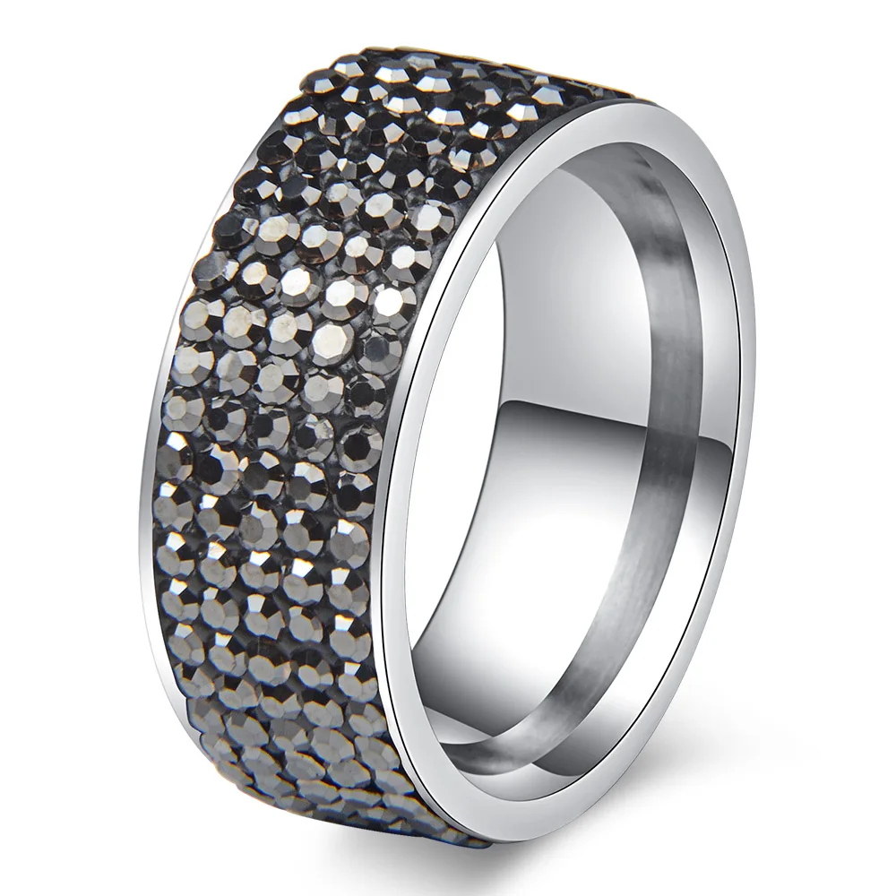 Wholesale size 6/7/8/9/10 5 Rows Crystal Stainless Steel Rings for Wedding Jewelry