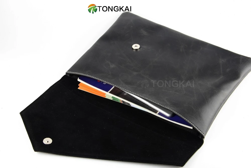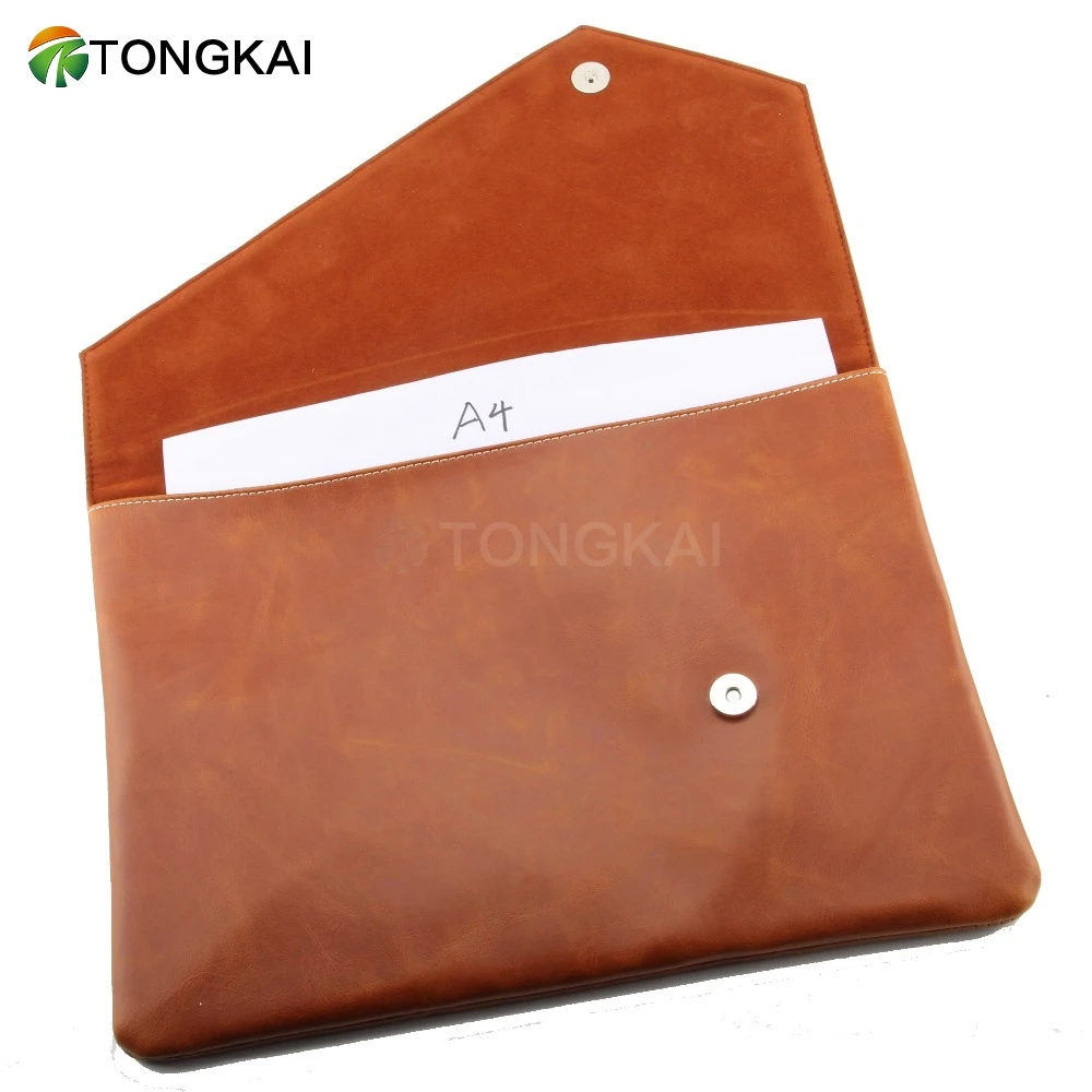 Custom A4 Leather File Folder Laptop Protective Case Locking Envelope Document Organizer Storage Bag With Sleeve Nap
